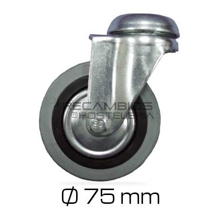 Ruedas de goma económica, con estructura galvanizada y base rodante en Goma. Duración y resistencia garantizada, ideales para mesas, maquinaria, carros en mataderos, salas de despiece y demás sitios donde el grado de humedad es elevado. Diámetro de la rueda: Ø 75 mm