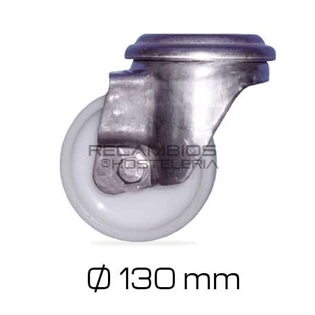 Ruedas de Nylon económica, con estructura Inoxidable y base rodante en Nylon. Duración y resistencia garantizada, ideales para mesas, maquinaria, carros en mataderos, salas de despiece y demás sitios donde el grado de humedad es elevado. Diámetro de la rueda: Ø 130 mm